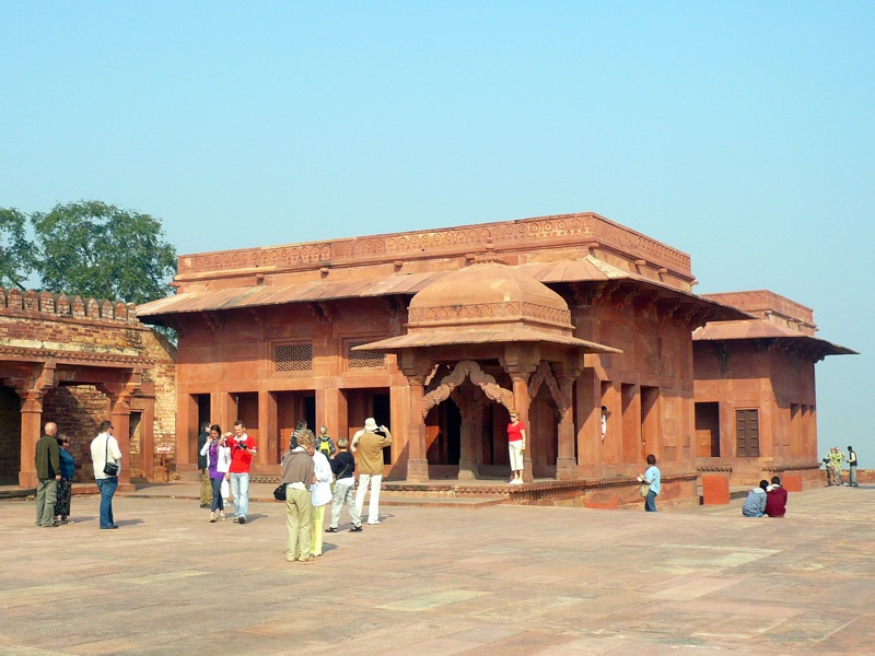 - Sala Audiencji Prywatnych, z oryginalnym wnętrzem: środek sali zajmuje rzeźbiona ośmiokątna kolumna o kwadratowej podstawie, podtrzymująca sześciometrowy okrągły tron cesarski, do którego prowadzą kamienne mosty z czterech rogów sali. Diwan-i-Am