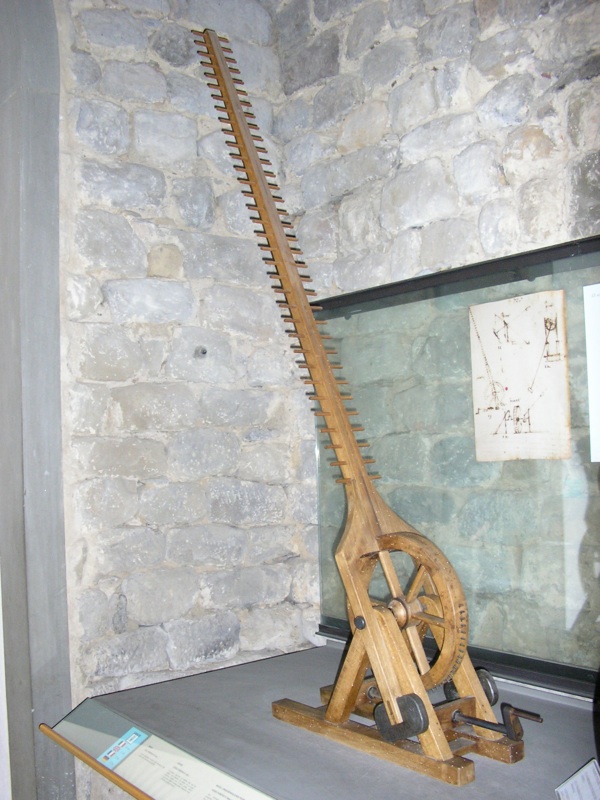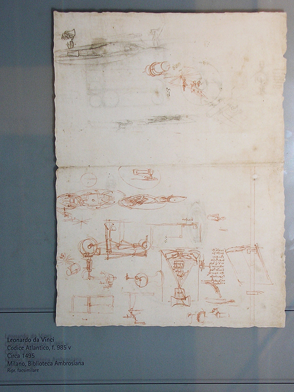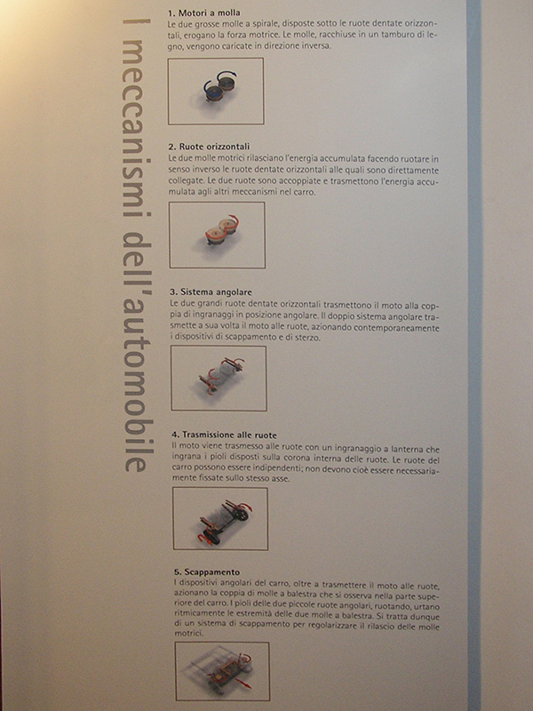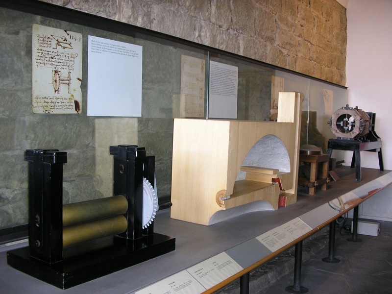 .Muzeum koncentruje się na działalności Leonarda da Vinci jako wynalazcy, budowniczego, inżyniera; prezentuje modele wykonane przez współczesnych rzemieślników według projektów Leonarda, a także jego rysunki, notatki i szkice. W ostatnich latach muzeum było zamknięte z powodu remontu; w maju 2010 roku miała miejsce jego re-inauguracja (ale zdjęcia zamieszczone na tej stronie pochodzą z roku 2004, sprzed reorganizacji muzeum).