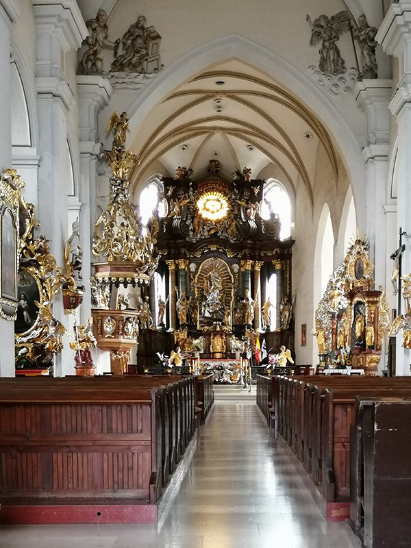 . Budowę kościoła w stylu gotyckim zaczęto w pierwszej połowie XV wieku; świątynia została po raz pierwszy rozbudowana pod koniec XV wieku, a następnie w XVI wieku. W 1642 została częściowo zniszczona, ale w drugiej połowie XVII wieku odbudowana. W barokowym wnętrzu warto zwrócić szczególną uwagę na ołtarz główny oraz chrzcielnicę i ambonę z drugiej połowy XVIII wieku.Ratusz pochodzący z pierwszej połowy XVI wieku, uzyskał obecny barokowy kształt (po wielu odbudowach ze zniszczeń i przebudowach) w drugiej połowie XVIII wieku. Dziś mieści się w nim Urząd Miasta.