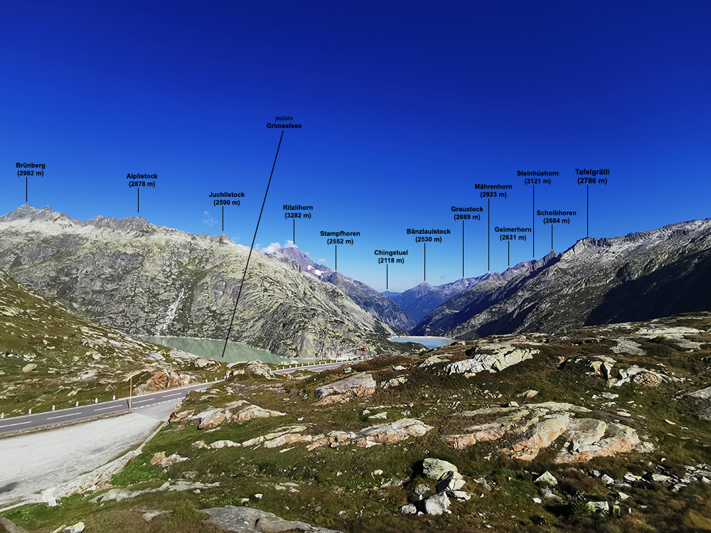 Grimselpass (2164 m) (➤ mapka)(➤ mapka) - to wysokogórska przełęcz drogowa, położona na granicy kantonów Berno i Valais / Wallis.
