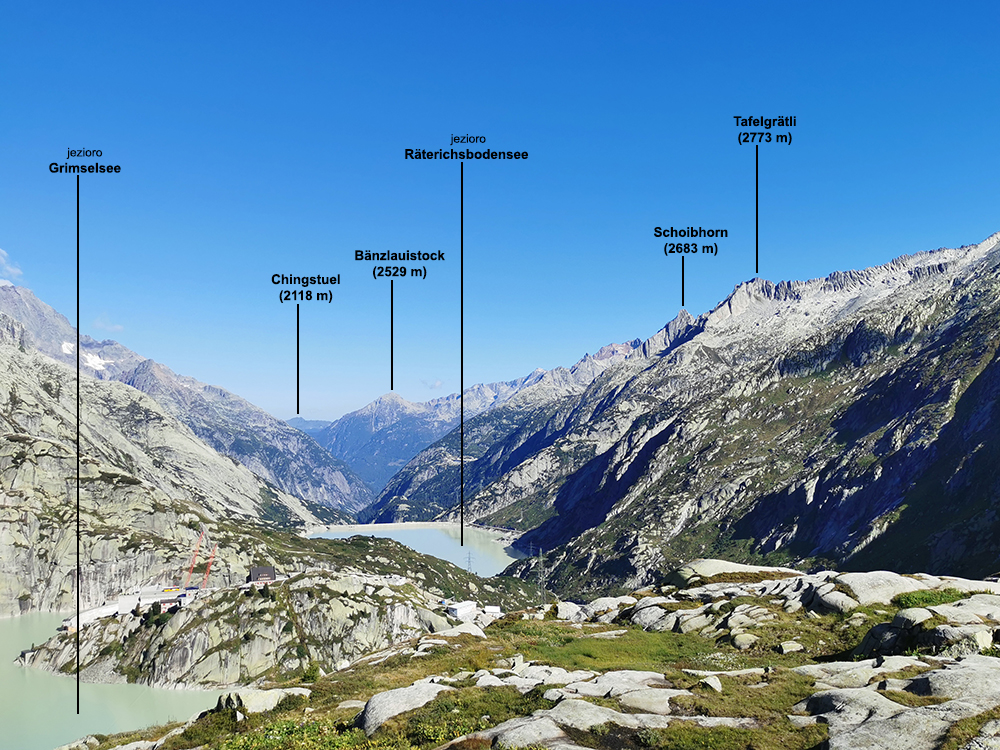 Grimselsee i Räterichsbodensee) wykorzystywanych przez zespół hydroeletrowni Kraftwerke-Oberhasli AG do produkcji energii elektrycznej. Na samej przełęczy leży jezioro Totesee.