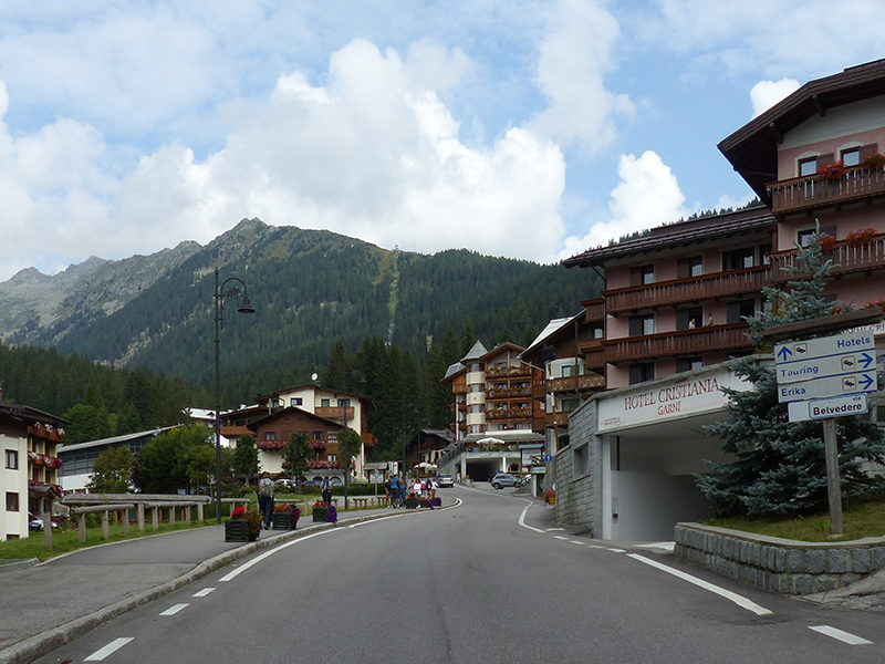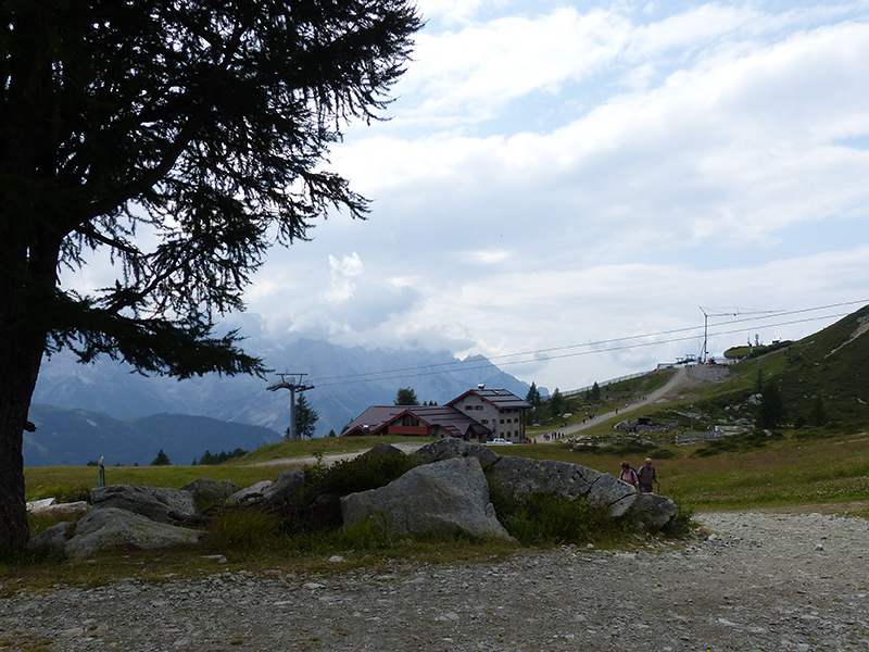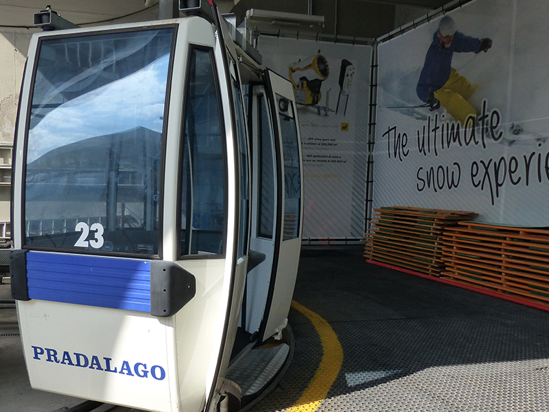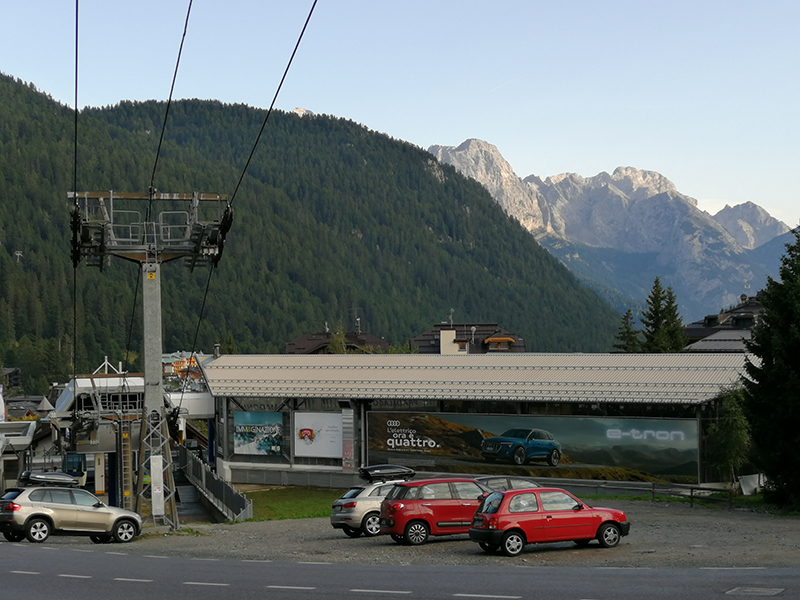 ; dolna stacja kolejki na Passo Grosté, oznaczona markerem