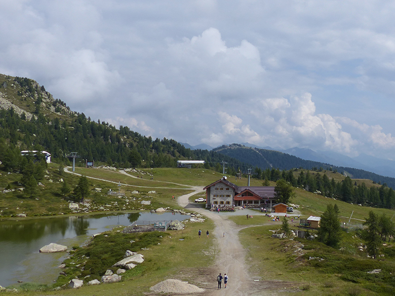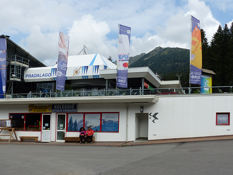 oznaczają odpowiednio dolną i górną stację kolejki, którą z Madonny di Campiglio można wyjechać w okolice położonego na wysokości 2051 m schroniska Rifugio 5 Laghi, które także może być punktem wyjścia wycieczek).