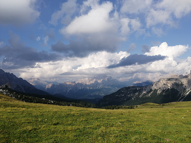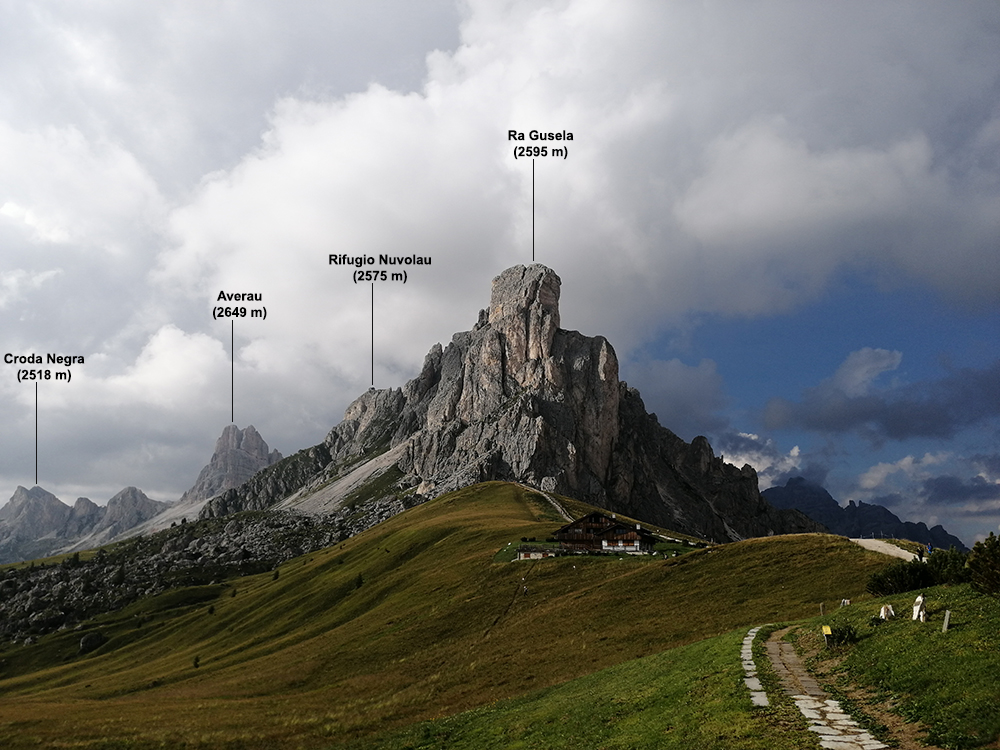 (2236 m)widok w kierunku północnym, od lewej szczyty: Croda Negra (2518 m), Averau (2649 m), schronisko Rifugio Nuvolau (2575 m), Ra Gusela (2595 m)