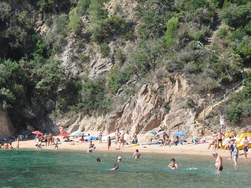 . Z kolei po drugiej stronie zatoki, na wschodnim skraju miasta, leży mniejsza i węższa niż plaża główna, ale zwykle nie tak zatłoczona, plaża La Mar Menuda - z wypożczalnią różnego rodzaju sprzętu do uprawiania sportów wodnych.Stosunkowo niedaleko od plaż miejskich w Tossa de Mar mozna znaleźć inne, małe, nadzwyczaj malownicze plaże w wąskich, otoczonych skałami zatoczkach (jedną z nich jest np. plaża w zatoce Cala Giverola, parę kilometrów na północny wschód od plaży głównej, licząc w linii prostej - kilka obrazków z tego miejsca można zobaczyć w galerii zdjęć niżej); niestety znalezienie do nich drogi dojazdu lub dojścia nie zawsze jest łatwe.
